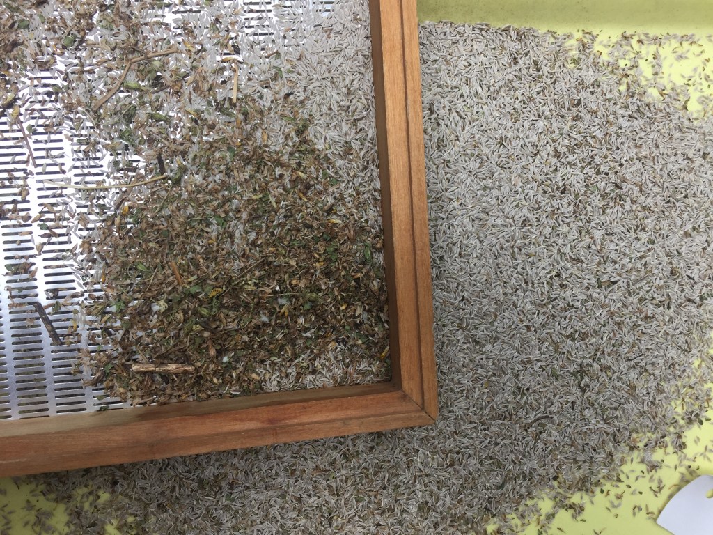 Evenings are spent shaking seeds into buckets. Weekends are spent rotating drying piles of plants in front of fans, making sure they don’t get too hot, or not get enough air. Afternoons, after myriad other things in the day of a life of a non-profit employee, are spent driving out of town down a bumpy and washed out country road to gather seeds at a friend’s place, who is helping with the effort to steward local varieties.