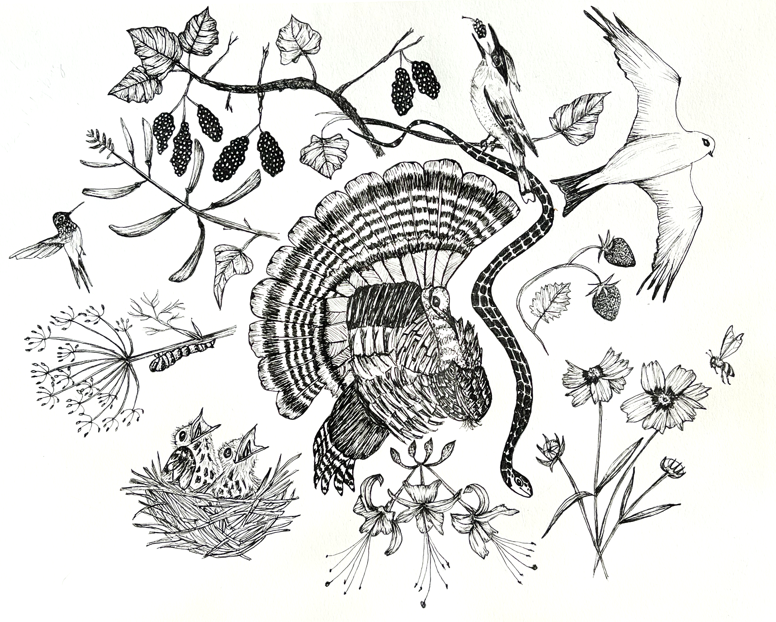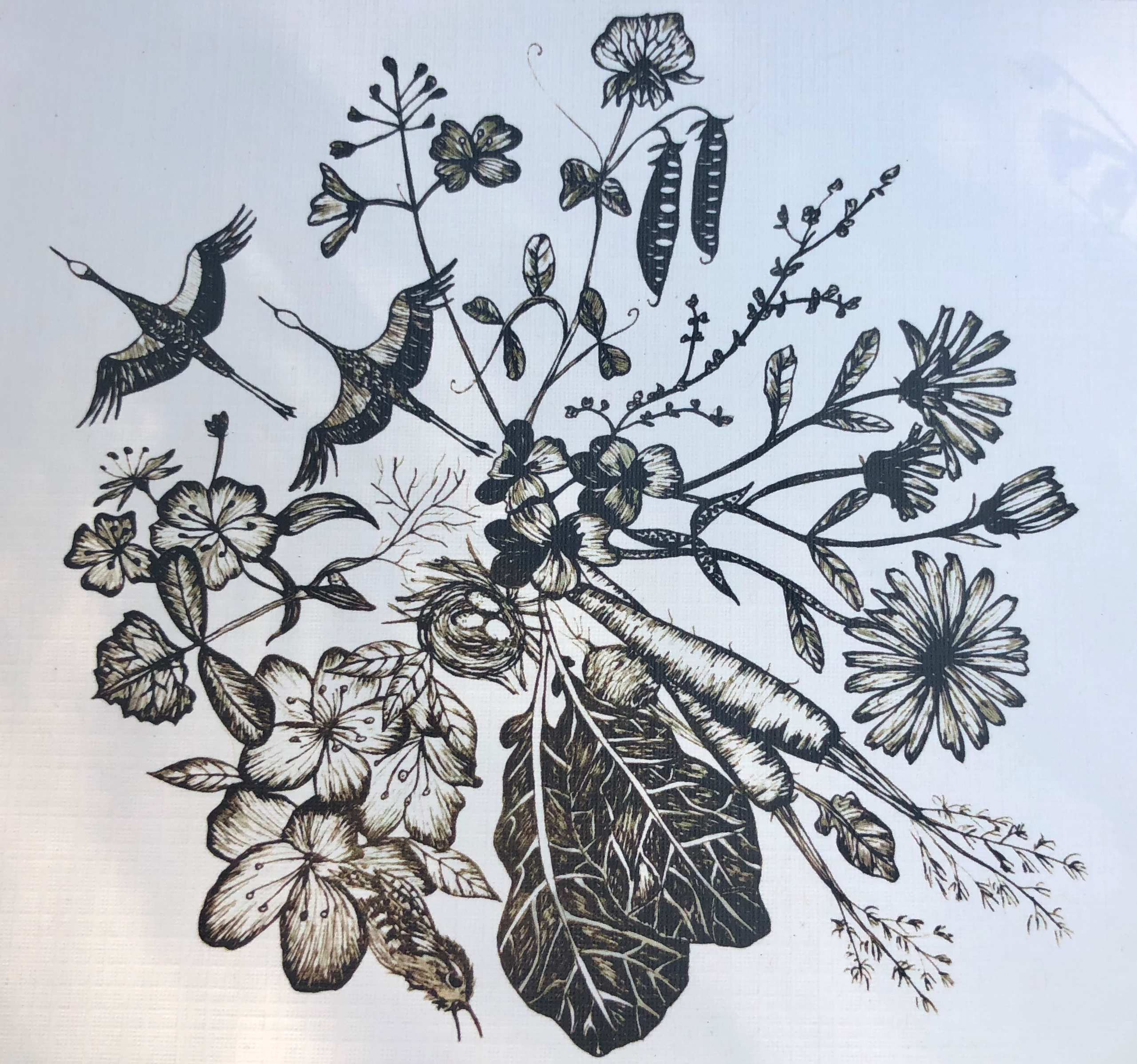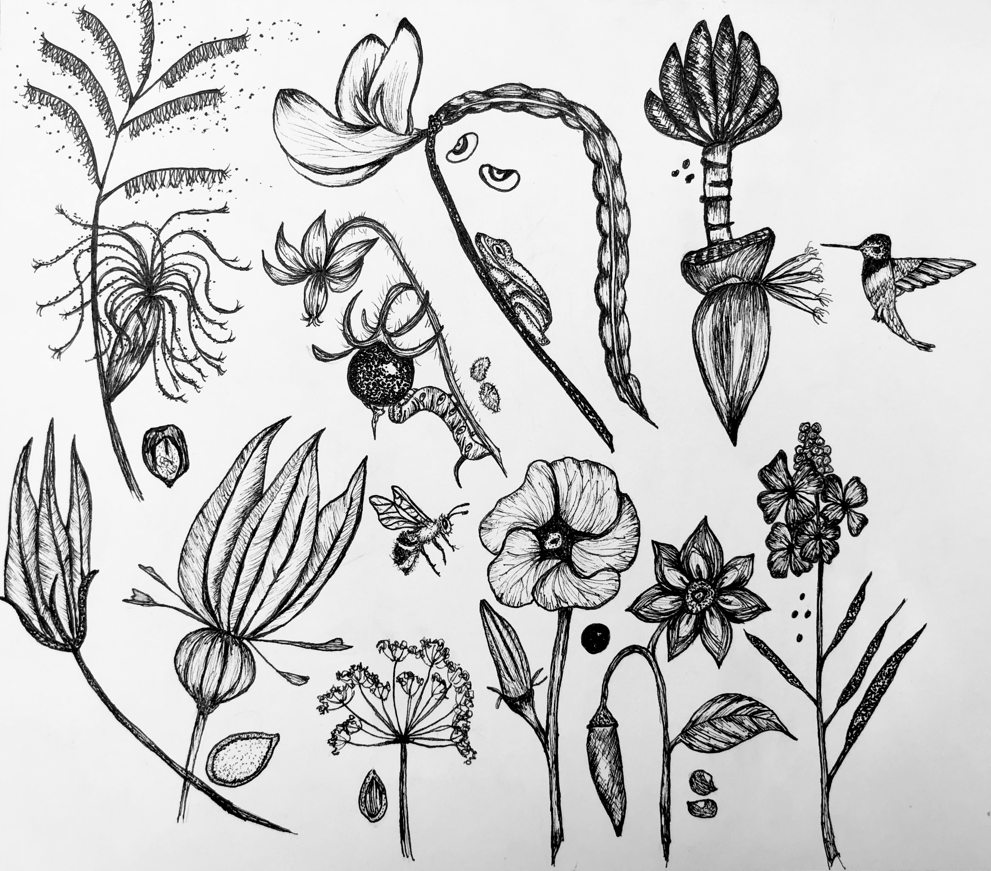 Drawing and painting a plant or critter requires a lot of close observation to detail, and I develop a new relationship with these beings when they are sketched, carved or painted. I’ve grown all of the plants I re-create and know many of the critters well too.