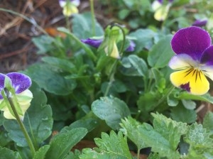 Johnny jump ups are dainty little purple violets, that grow in my garden every year. Planted from seed years ago, they jump up wherever they please year after year. They are a welcome visitor each fall, not only for their beauty and ease of care, but because they remind me of the alleyways they sprawled out into in my childhood; my mother and I returning with trowels to dig up a few for the garden at home. Her affection for the pretty little flowers has stayed with me all these years. I have a couple tattooed on my arm.