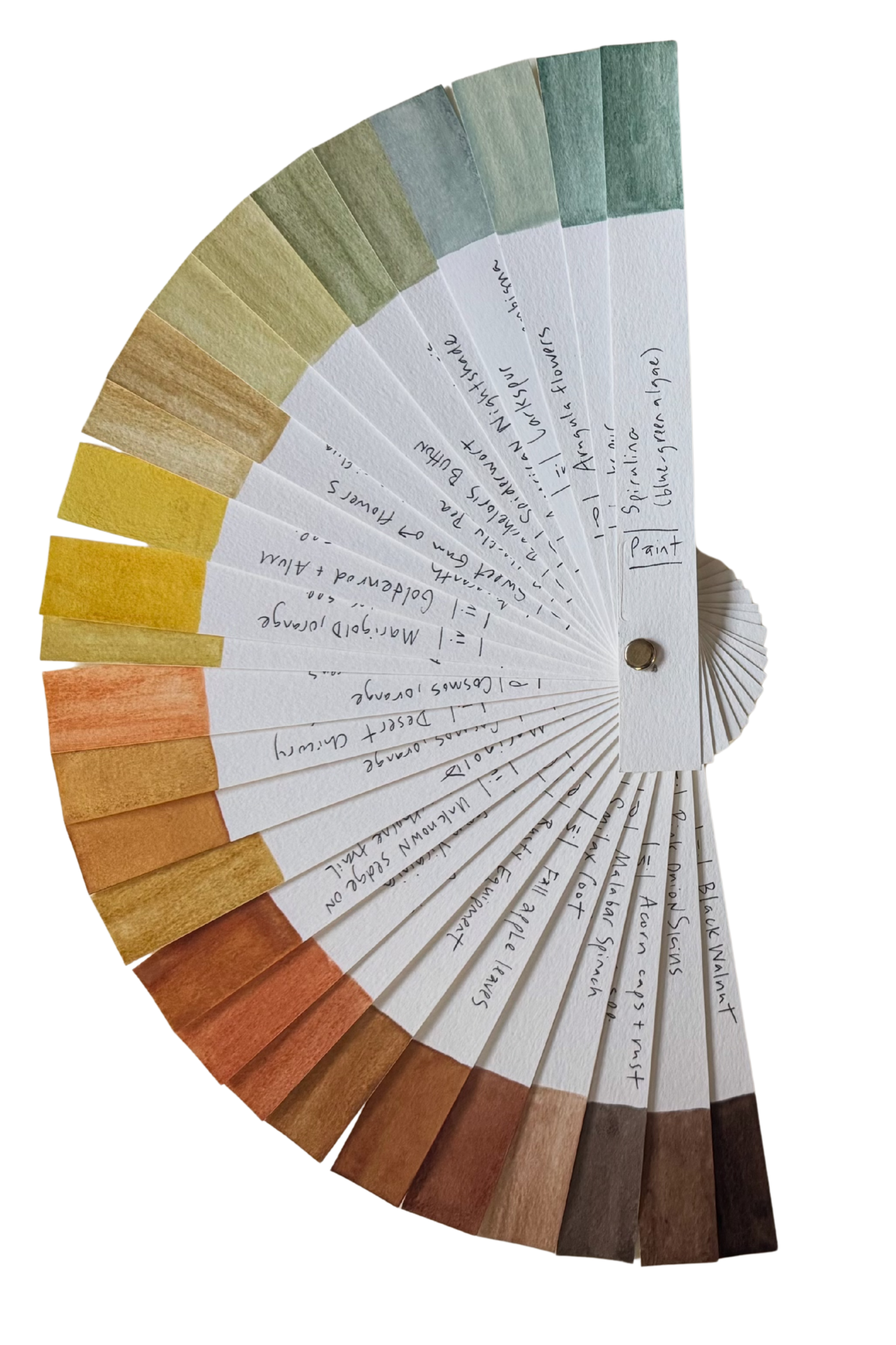 In 2022 I found myself unexpectedly curious and in love with the idea of making my own inks and paints from plants and other natural materials around me. I discovered this while reveling in the luxurious time and space of an artist in residency program at Oak Spring Garden Foundation in Virginia. Ever since those endless days of tinkering and discovery, I’ve made quite a collection of vibrant colors.