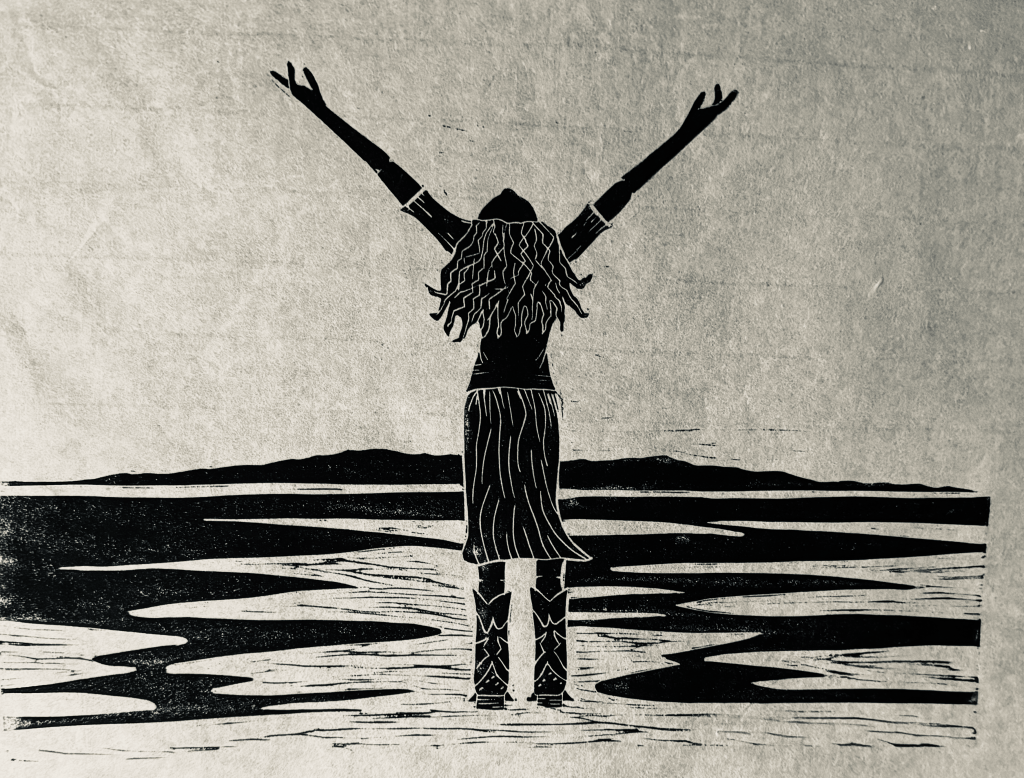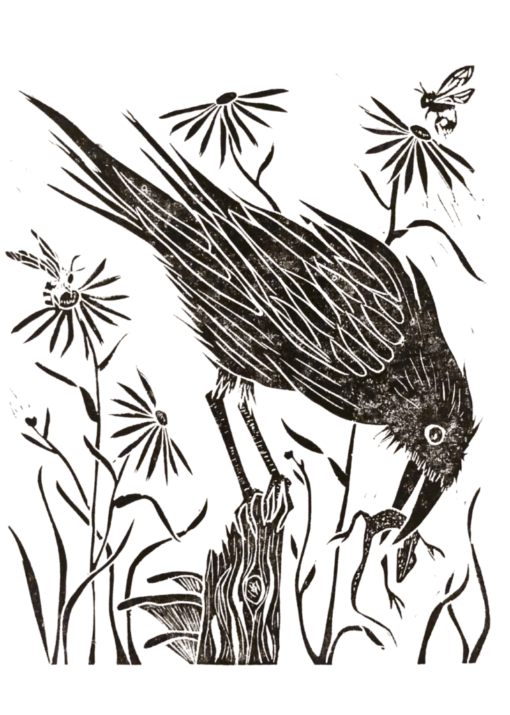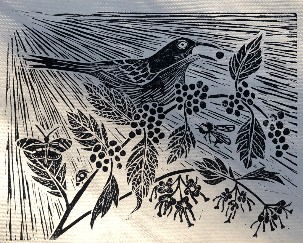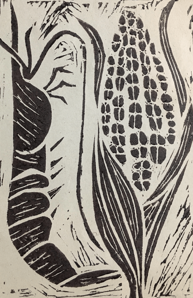 Linoleum Prints Hand made at every step. Original sketch carved onto linoleum, then inked and pressed onto paper. Related