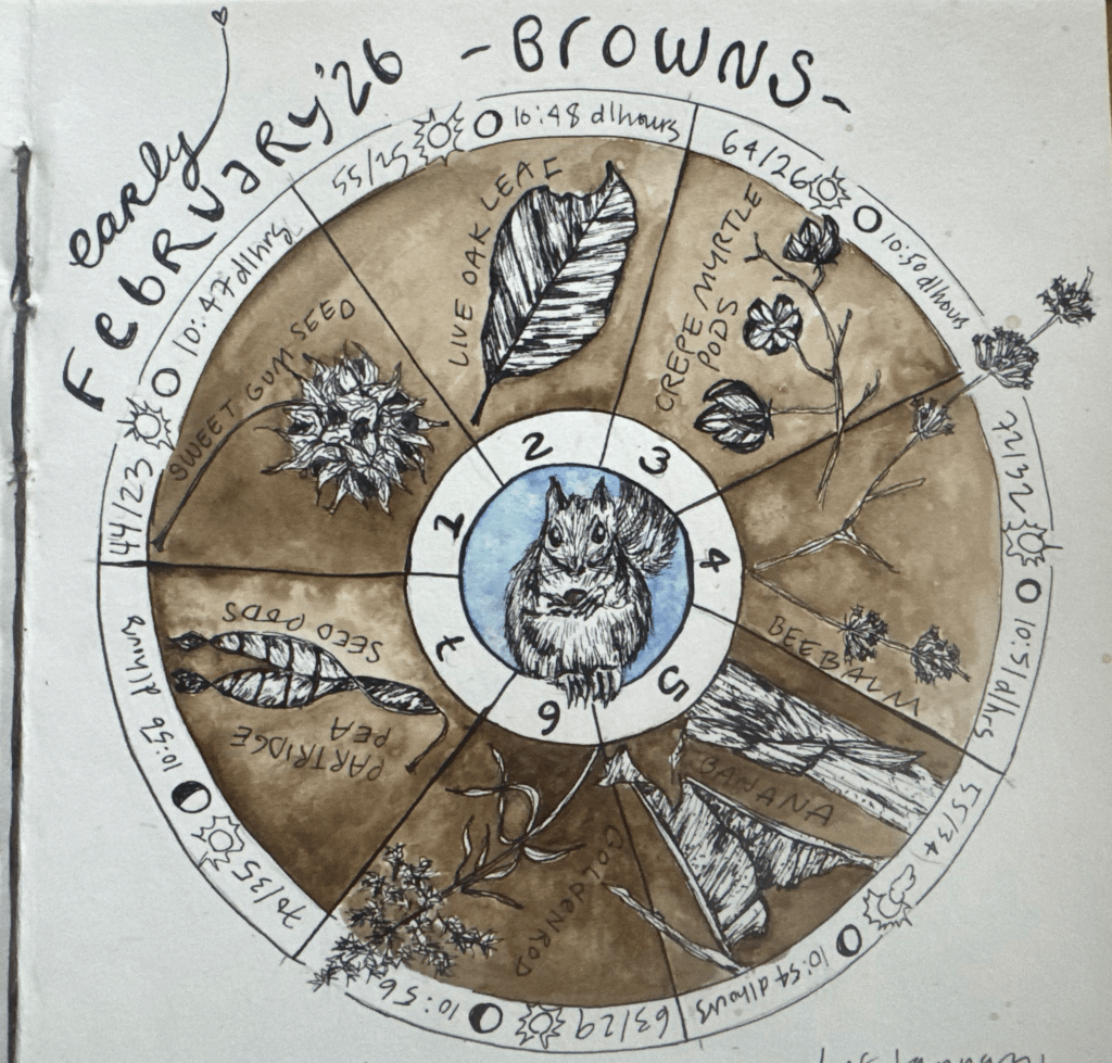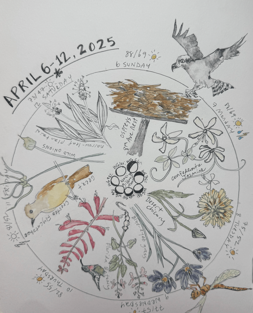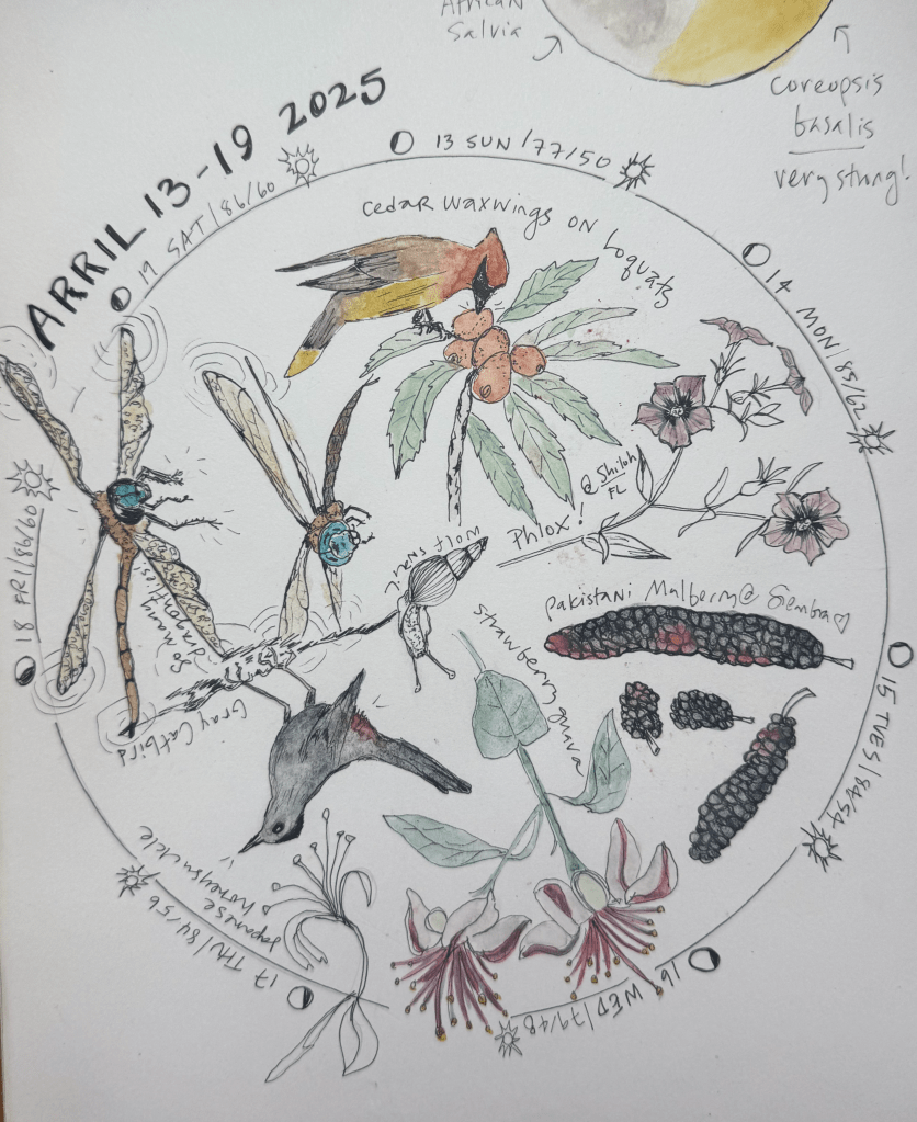 Phenology: the study of the timing and cyclical patterns of events in the natural world, particularly those related to the annual life cycles of plants, animals, and other living beings. I love making wheels to capture some of the weekly, monthly, or seasonal goings on in the natural world.